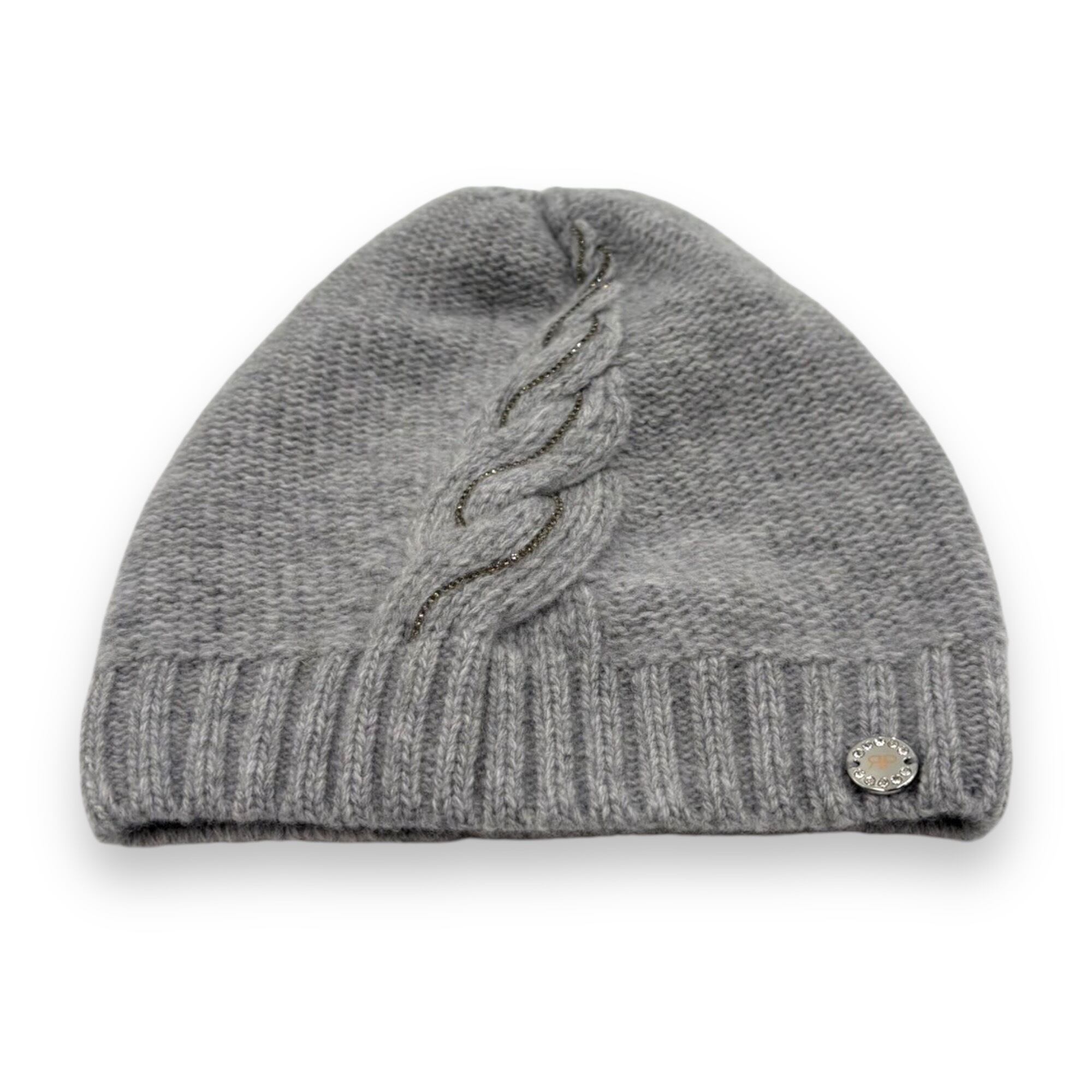 クチュールケーブルビーニーは、日本未発売のイタリア製ニット帽で、上質なウォシャブルウールを使用したアイテムです。軽量でまるでカシミアのような滑らかな肌触りが魅力で、寒い季節でも快適に過ごせます。特に特徴的なポイントは、真ん中のケーブル編み部分に施された繊細なラインストーンの装飾です。シンプルながらも魅力的なアクセントを加え、あなたのスタイルに華やかさをプラスします。