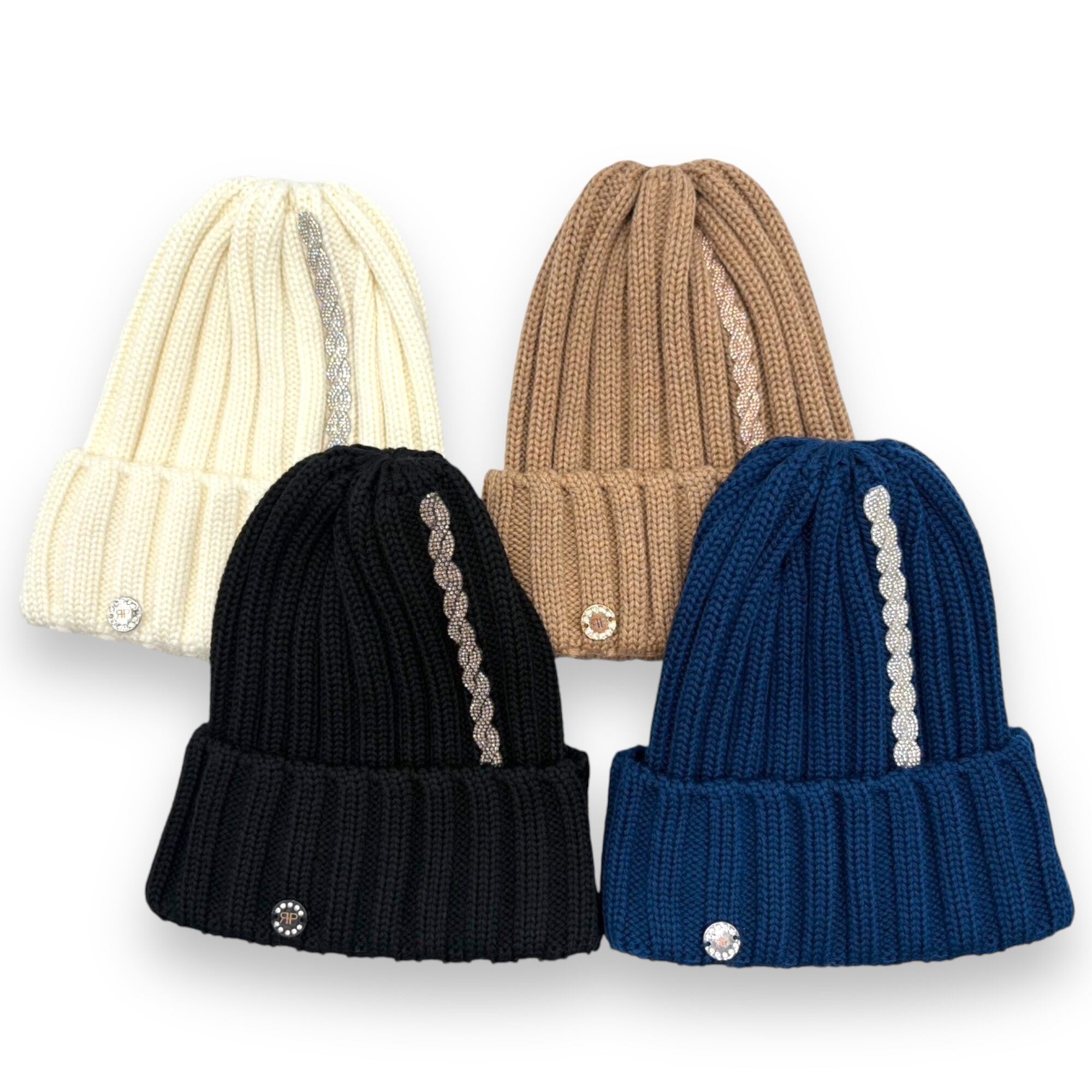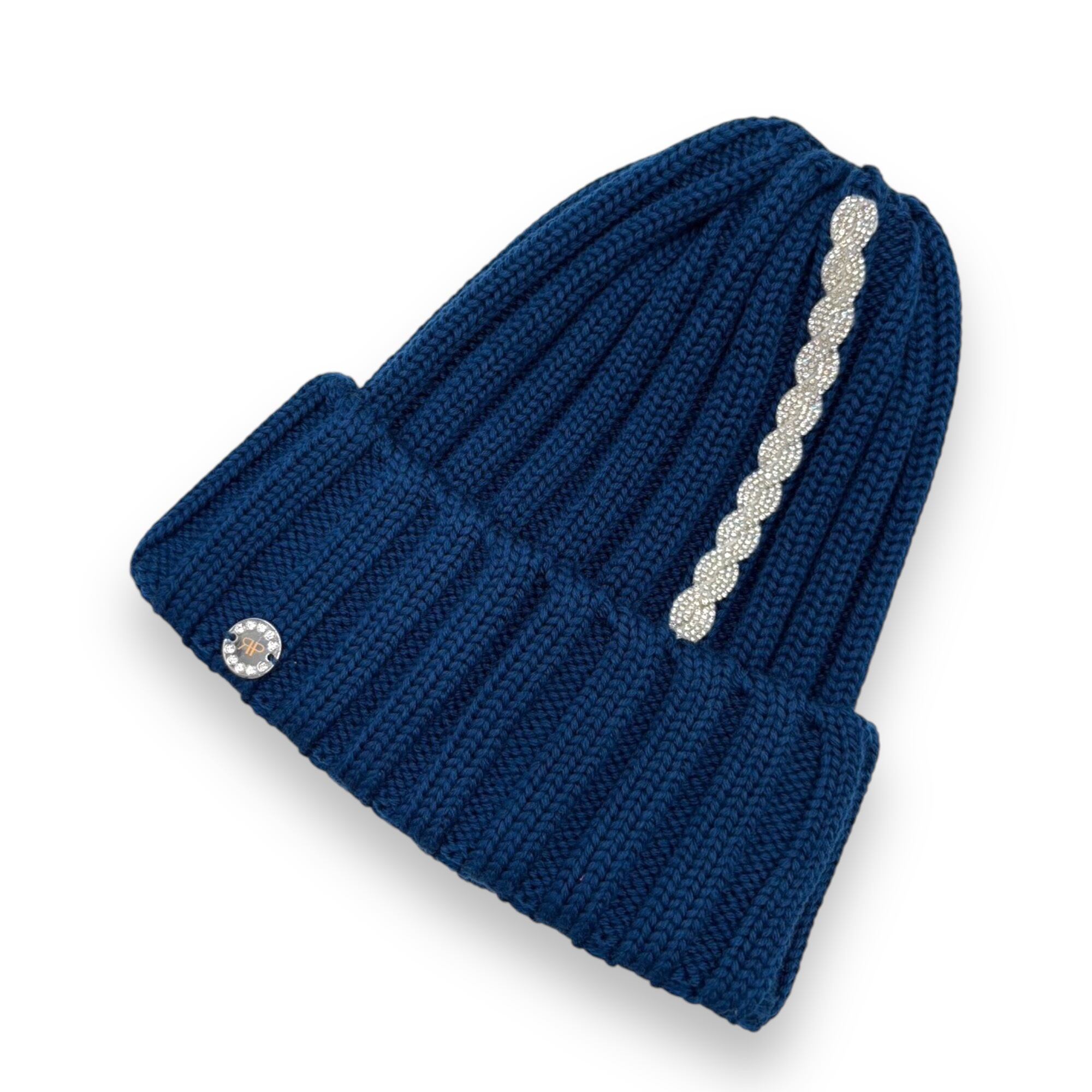 MI001-ケーブルビジューリブニット帽・ベネチアンブルー